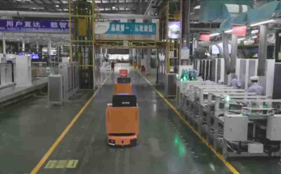 为车载冰箱物流配送打造的智能解决方案,,,包含产中物流通过潜伏举升AMR搬运至线边,,,产后成品物流智能仓储,,,流程包含产中物流智能齐套入库,,,,线边安灯叫料AMR智能配送至线边,,,,成品入库、、、、出库,,,,通过无人堆高车机器人,,,智能仓储管理替代人工作业管理,,,,实现更高存储、、更高效率、、、更具柔性化的解决方案。。。